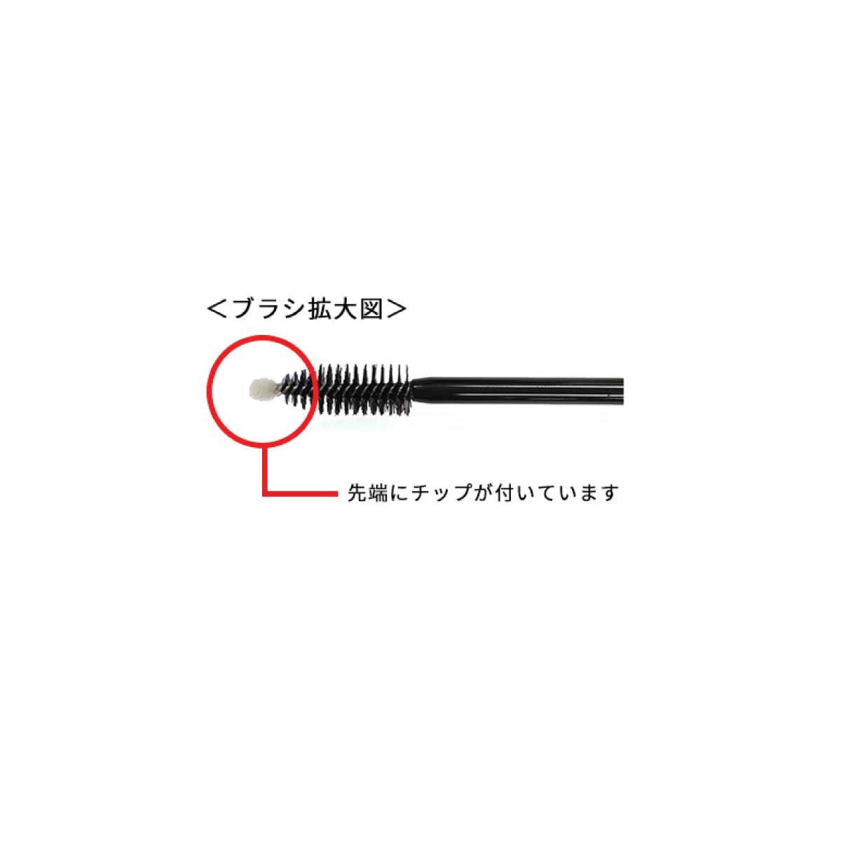<先端のチップ>上下まつ毛の根元(生え際の皮膚の部分)にアイラインを引くように塗布します。