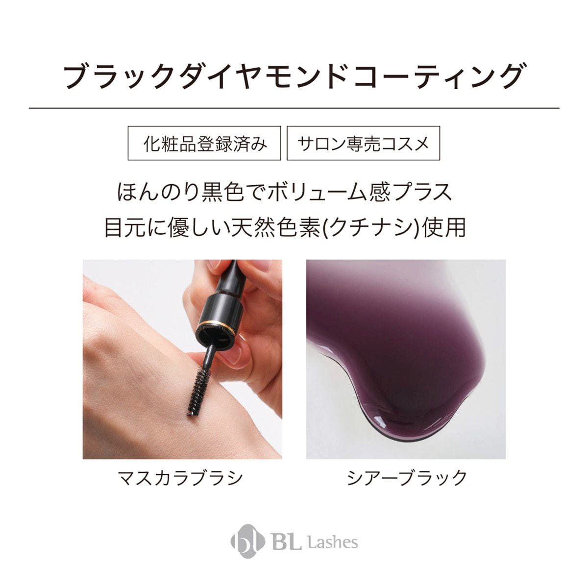 清潔なまつ毛の根本にブラシを軽く当て、毛先を持ち上げるように均一に塗って下さい。
